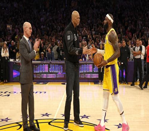 你能想象吗?一个从小在俄亥俄州阿克伦街头打球的孩子,有一天会站在NBA历史得分榜的最顶端,而把篮球亲手交到他手里的,是那个曾经遥不可及的名字——卡里姆·阿卜杜尔-贾巴尔。那