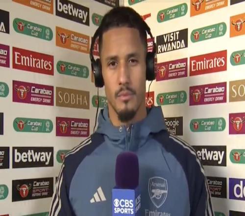 英联杯1/4决赛,阿森纳通过点球大战淘汰水晶宫,赛后,阿森纳后卫萨利巴接受了CBS体育的采访。威廉,在经历了这场令人难以置信的点球大战之后,你感觉如何?是的,我们非常高兴今天能进入